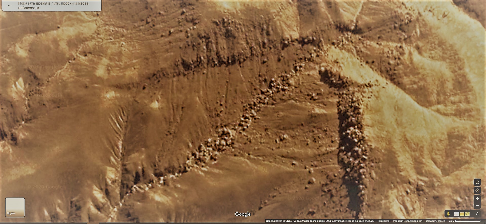 ResizerImage1581X970Ну и снова скриншоты с карт,которые нам предоставляет многоуважаемый Google.Ага,вот эти скриншоты с Южной Америки,вроде это Перу,но не уверен,но есть координаты,по которым можно посмотреть местоположения этих мест(вроде как каламбур,но это не важно).В принципе это просто местность,скажем так-довольно пересечённая и пересечена она во многих случаях не без вмешательства кого-то.И получается что эта местность представляет для кого-то какой-то интерес.Ну вот например-кому придёт в голову расчертить символы на земле просто так?Ну вот мы чертили подобные полосы на земле хотя-бы для игры в ножички,но там мы постепенно отрезали чью-то часть земли в свою пользу.А вот здсь кто и какими ножиками расчерчивал?Непонятно это всё,хотя бы потому что в то время когда появились эти образования на земле и наше время,когда мы играли в "землю" очень большой разрыв во времени имеют...Много раз люди брались разгадать,понять и объяснить всем-что это и для чего.Или вот ещё скриншот-очень похоже на развязку