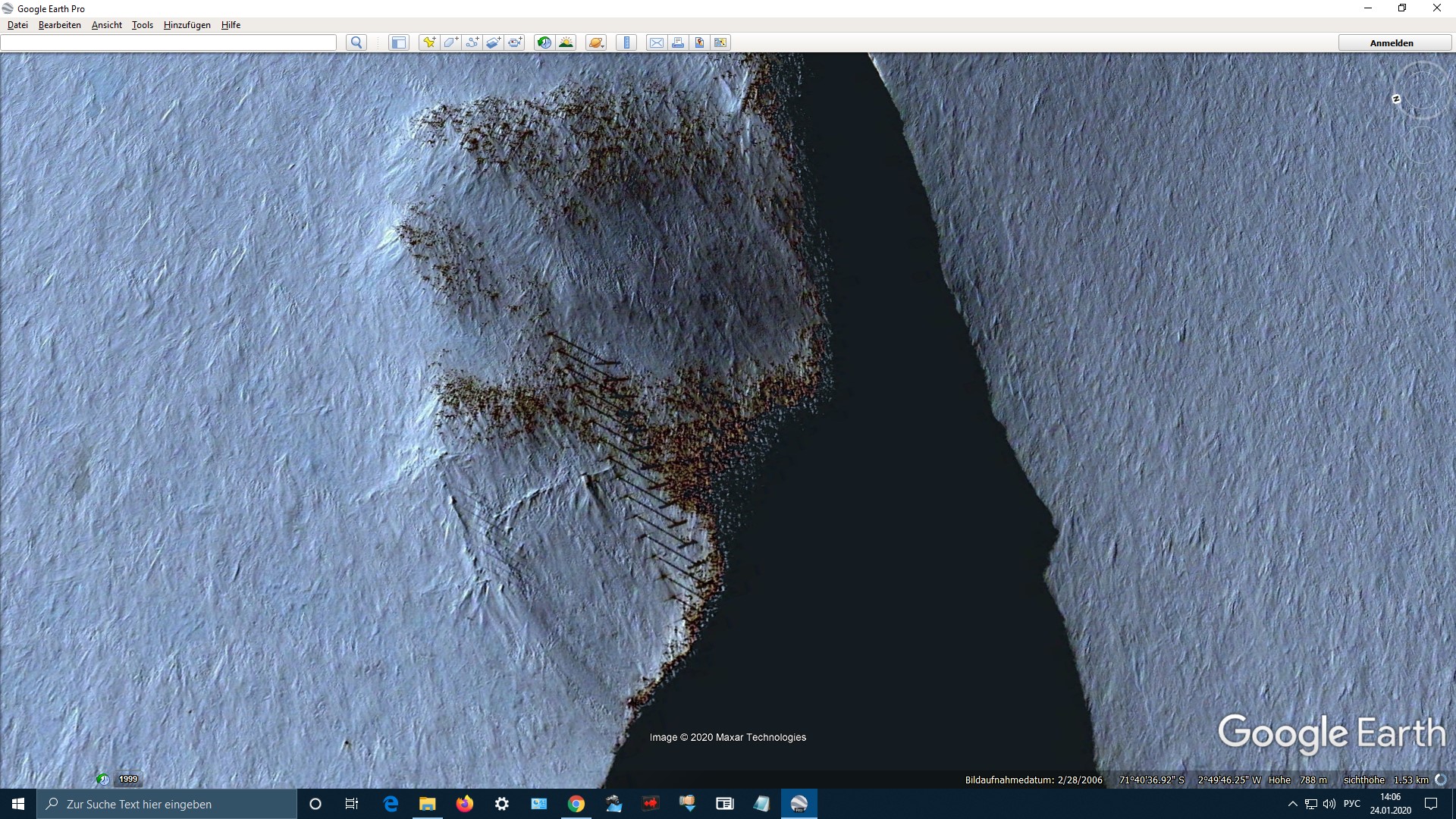 Ну что,буду делиться ещё одним скриншотом из GoogleEarth,и опять Антарктида.Почему публикуются скриншоты только Антарктиды?Просто нужно было давно этим заняться,скриншоты сделаны давненько,скоро наберутся ещё,а я ещё и с этими не расхлебался...Есть ещё скриншоты Южной Америки,с той стороны где находится пустыны Наска,но это потом.В общем речь идёт о передаче электроэнергии либо телеграфных сообщений,поэтому на скрине наблюдаются столбы,но может это что другое.Ладно,я остановлюсь на версии,что это столбы.Деревянные столбы для линии электропередач либо это телеграфная связь.По моему мнению-это ни то ни